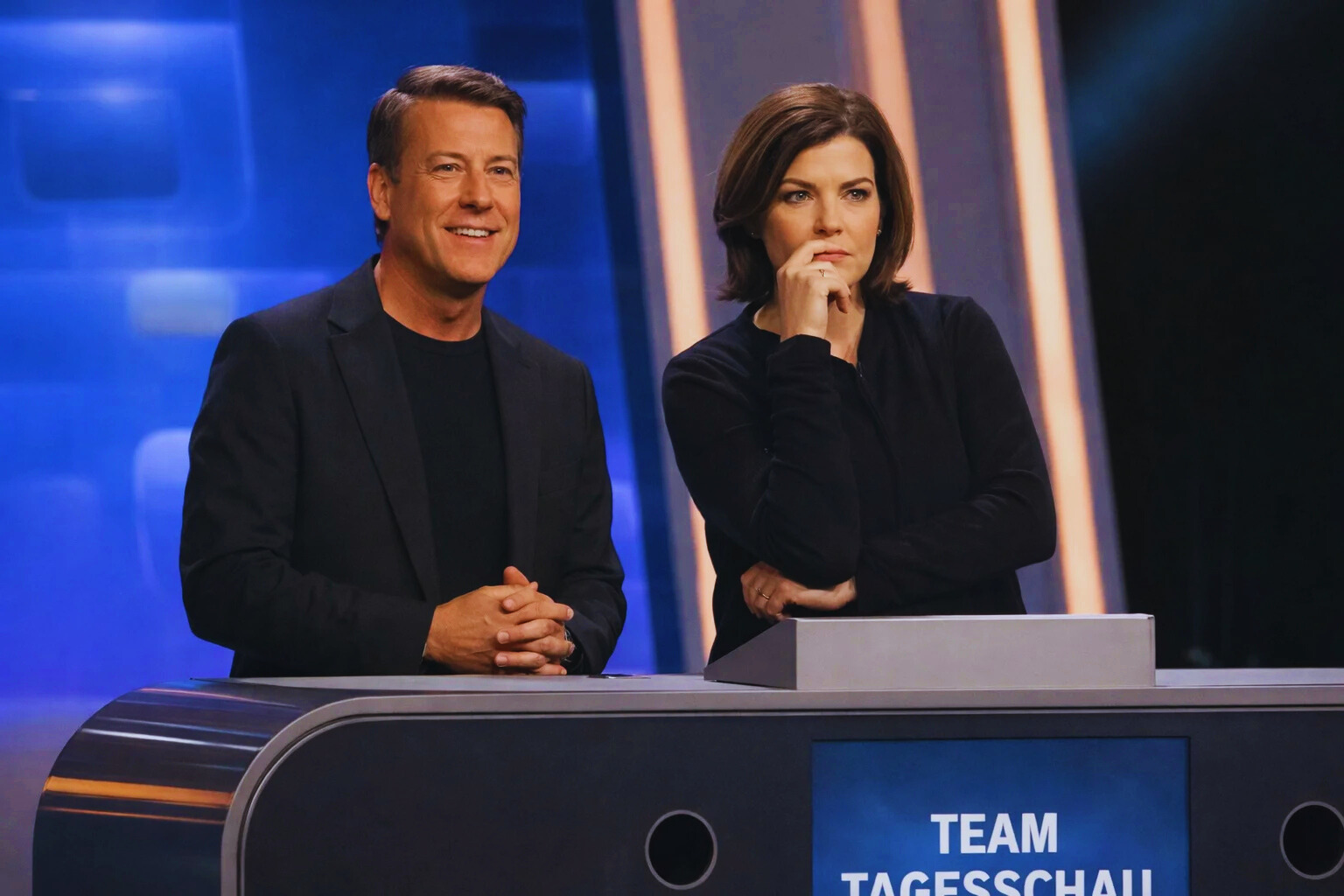Susanne Daubner gehört seit den neunziger Jahren zu den bekanntesten Nachrichtensprecherinnen Deutschlands. Ihre klare Sprache und ruhige Präsenz prägen die Tagesschau bis heute. Jens Riewa ist ebenfalls seit vielen Jahren ein vertrautes Gesicht der ARD und moderiert regelmäßig Hauptausgaben der Nachrichtensendung.